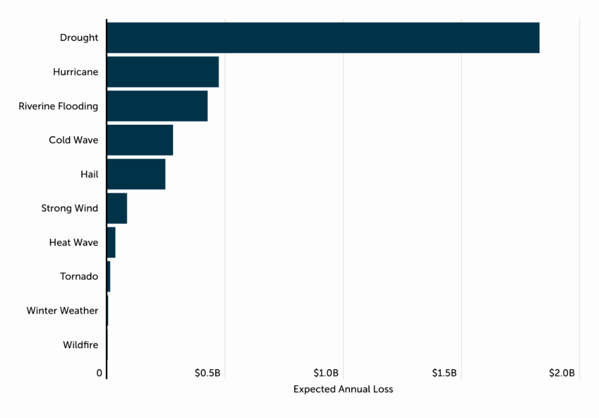 According to estimates from FEMA, natural hazards cause an average of $3.4 billion in agricultural losses annually, with drought being the single largest contributor. Drought alone accounts for more than half of these losses, averaging $1.8 billion per year. The financial impact of drought underscores its threat to farmers, particularly in regions reliant on water-intensive crops.